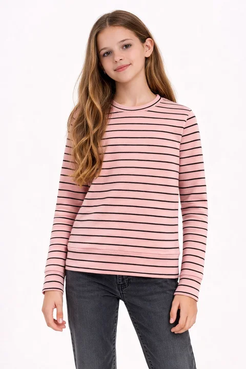 Buzo de nena de coconut rayado clasico con cuello redondo