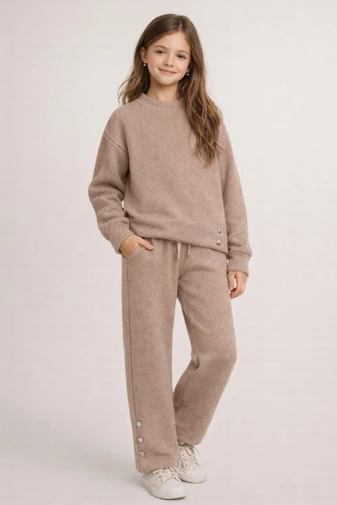 /Otoño Invierno 26/Conjunto de lanilla niña de buzo y pantalón con botones en combinación