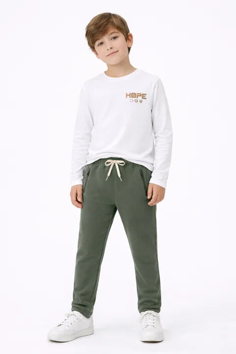 Pantalón infantil confeccionado en rústico, ideal para la temporada otoño invierno. Su diseño liso y minimalista lo convierte en una prenda versátil y fácil de combinar para el uso diario.
